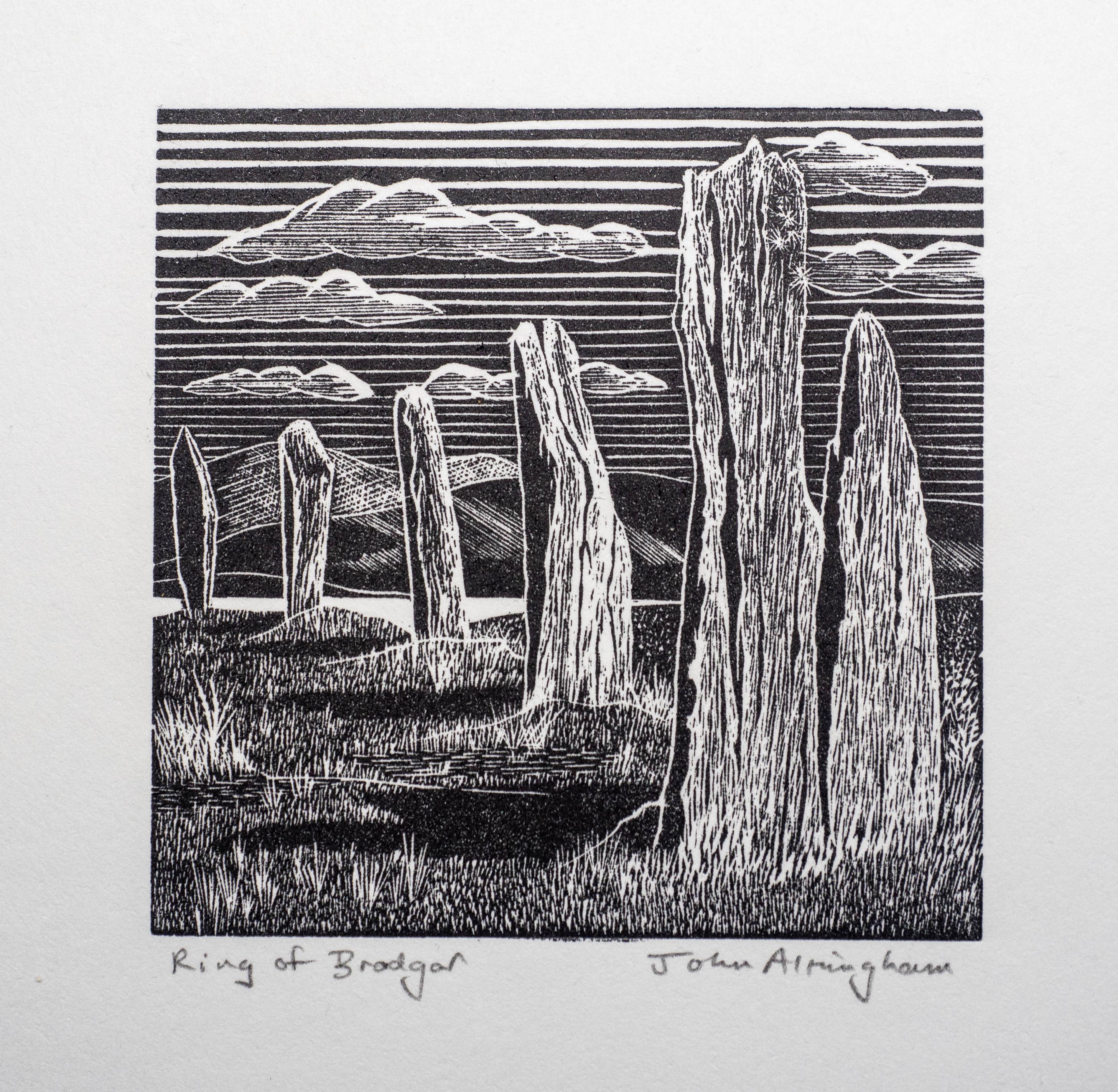 Wood engraving print, 75x75mm. The Ring of Brodgar, Orkney.