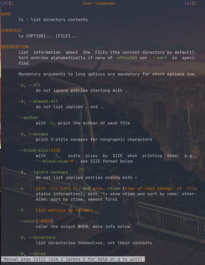 @b0rk there's a script to use bat for man pages (aptly called batman) https://github.com/eth-p/bat-extras, for syntax highlighting and some other stuff