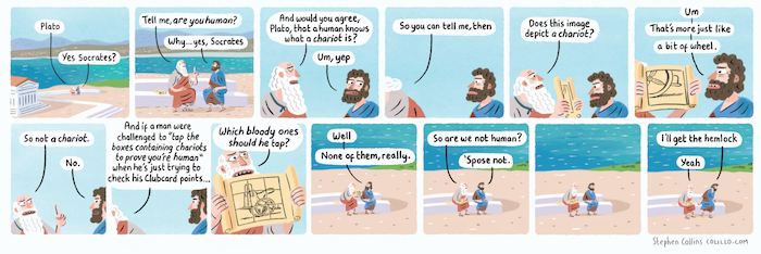 I missed it at the time, but someone recently pointed me to this Stephen Collins comic which is both brilliant and also perfectly captures a lot of what is broken in the current usability of technology. Assumed meanings, performative "checks", etc.