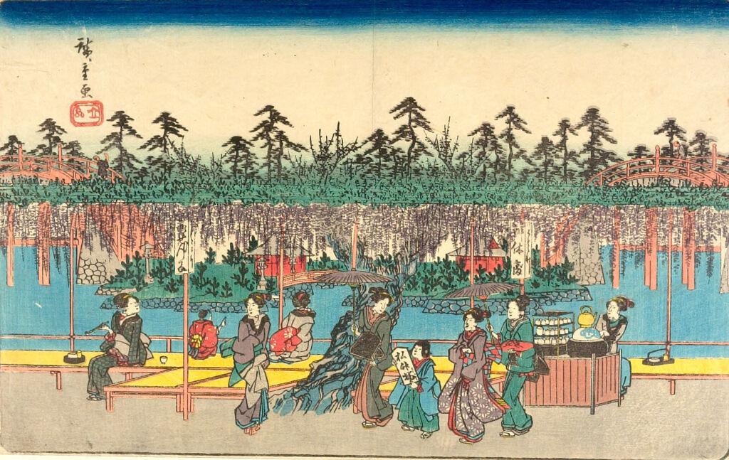 WISTERIA AT KAMEIDO TEMPLE GROUNDS, from the series Famous Places of the Eastern Capital (Tōto meisho)