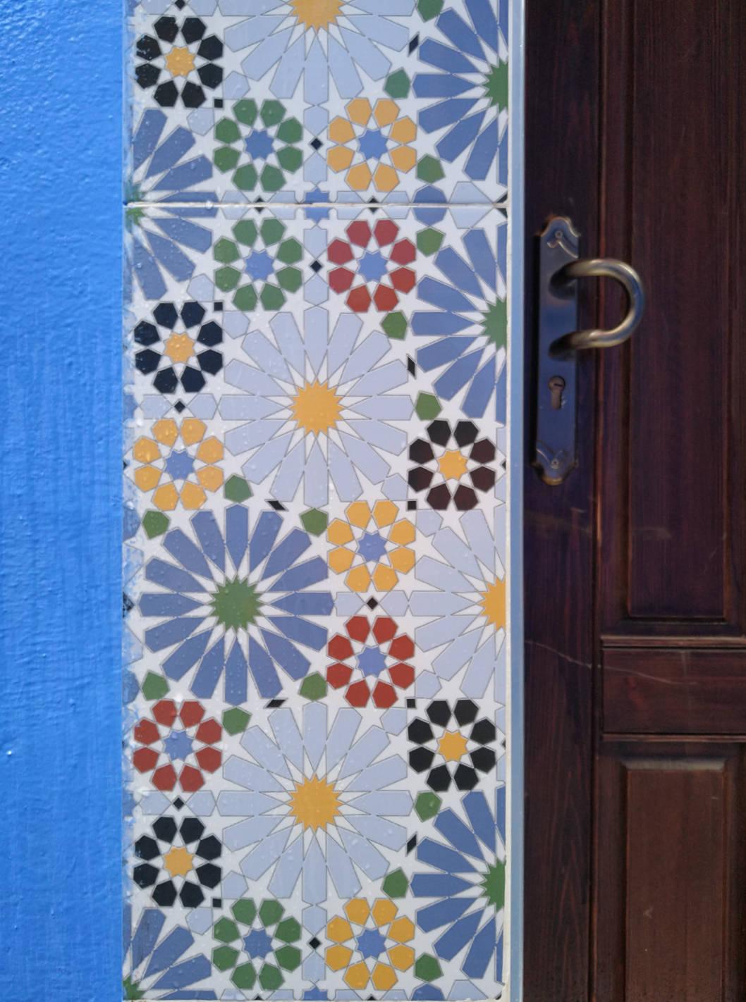 Tiling by a door, Chefchaouen, Morocco