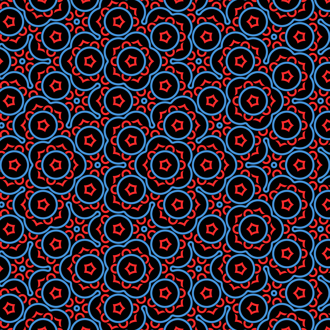 This "flower" pattern happened by accident when I was tuning the red circle positioning in my P2 Penrose tiling implementation in GLSL (the blue ones are correct) 馃檪