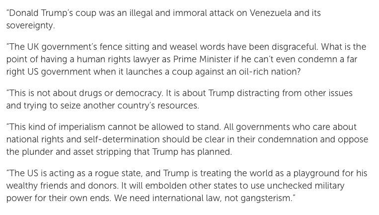 Here's Scottish Green's External Affairs spokesman Patrick Harvie's statement on the attack on Venezuela... which, as you might expect, takes a sideswipe (rightly) at Kier Starmer.