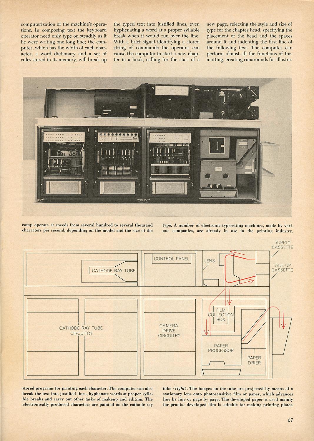 For your weekend reading, I’ve uploaded a 1969 article about electronic typesetting (along with a fair bit of printing and typesetting history) to the Internet Archive: https://archive.org/details/typesetting-gerard-o-walter-sci-am-may-1969