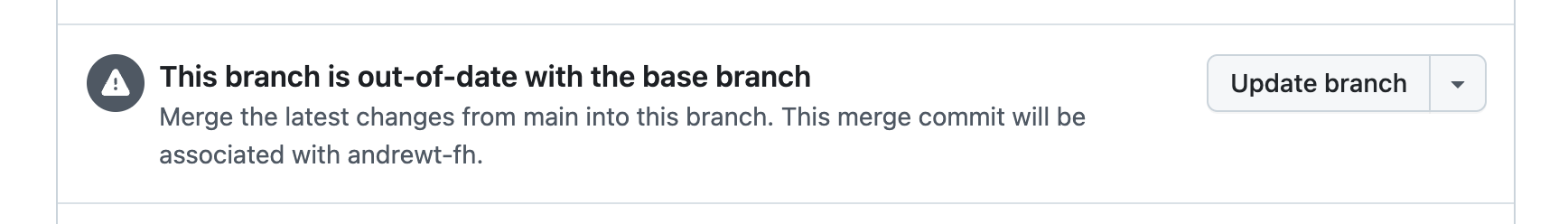 The GitHub "this branch is out of date, please merge in the latest changes" button